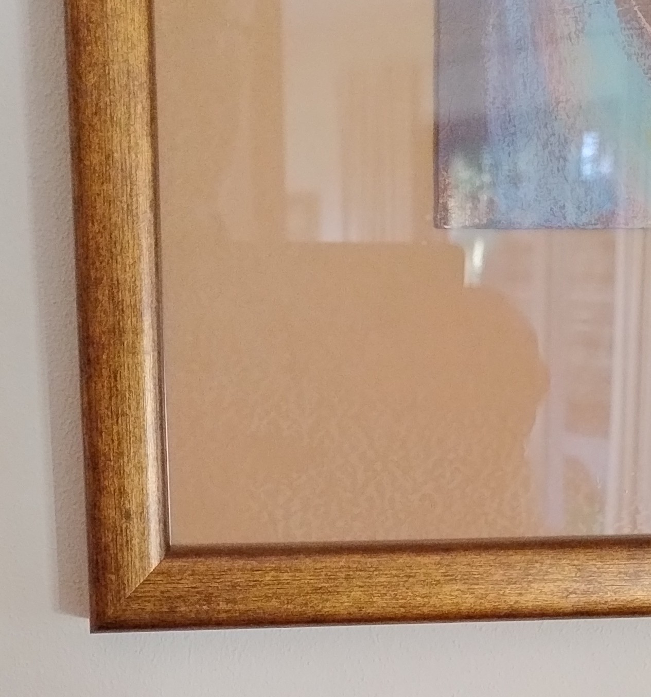 Obraz oprawiony w passepartout i delikatną złotą ramkę, gotowy do zawieszenia. Wymiar obrazu w oprawie: 42x100 cm.
