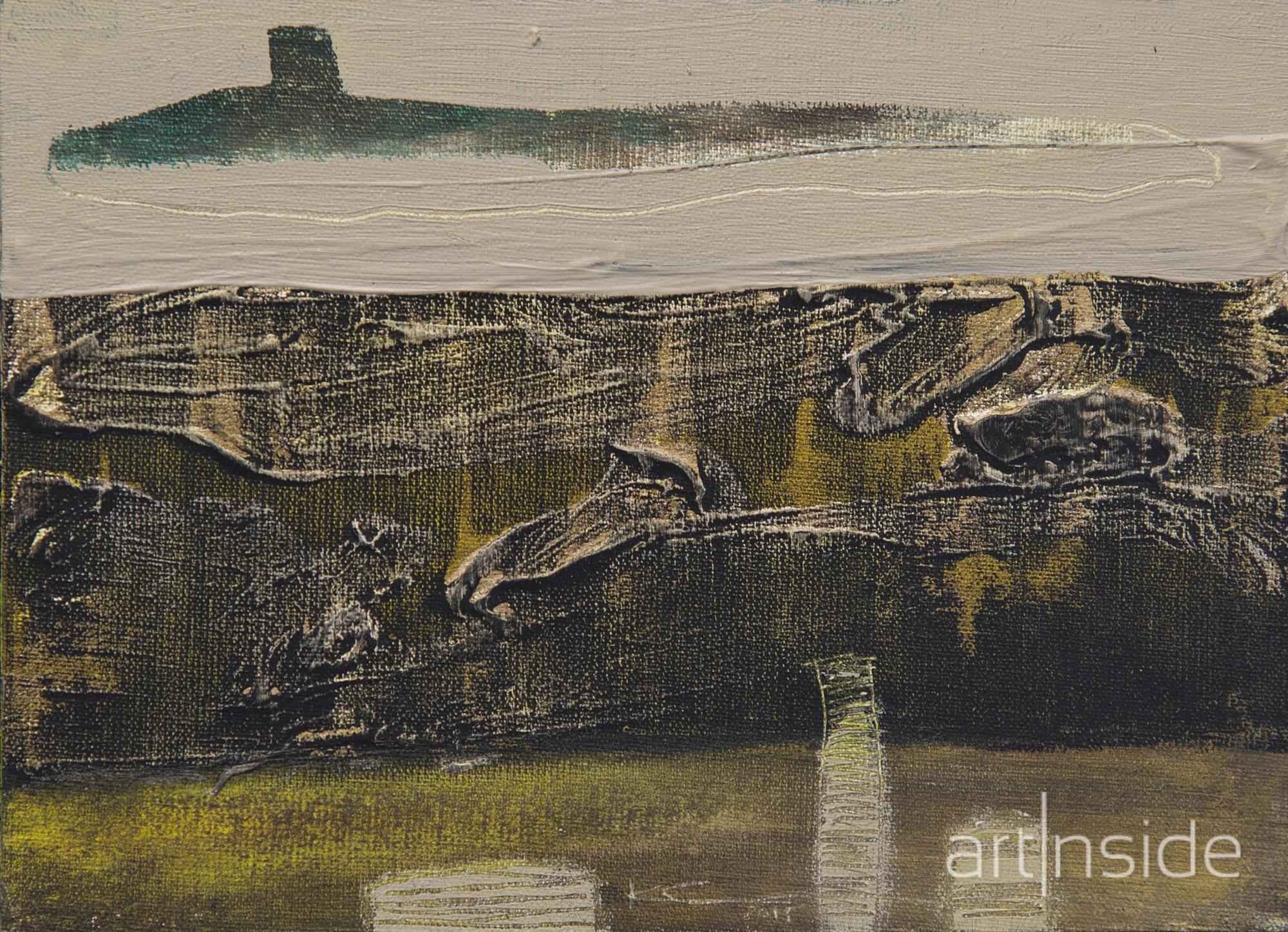 Obraz oprawiony w czarną, drewnianą ramę. Wymiar pracy: 18 cm na 13 cm.